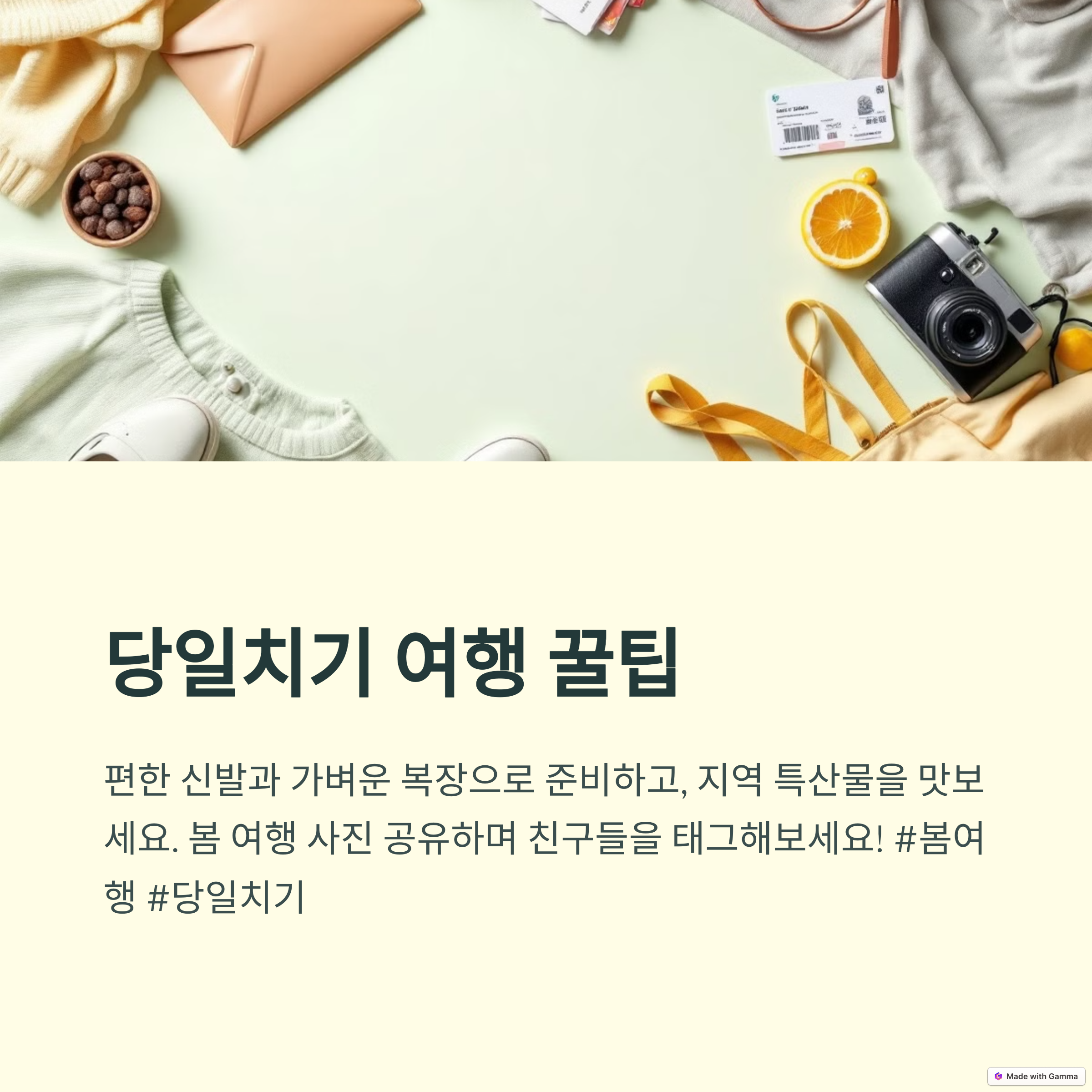봄이 시작되는 3월, 멀리 떠나지 않아도 충분히 즐길 수 있는 당일치기 여행지! 하루 만에 알차게 다녀올 수 있는 핫플레이스를 추천해드립니다. 🚗🌸